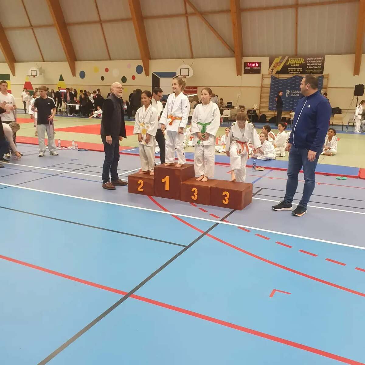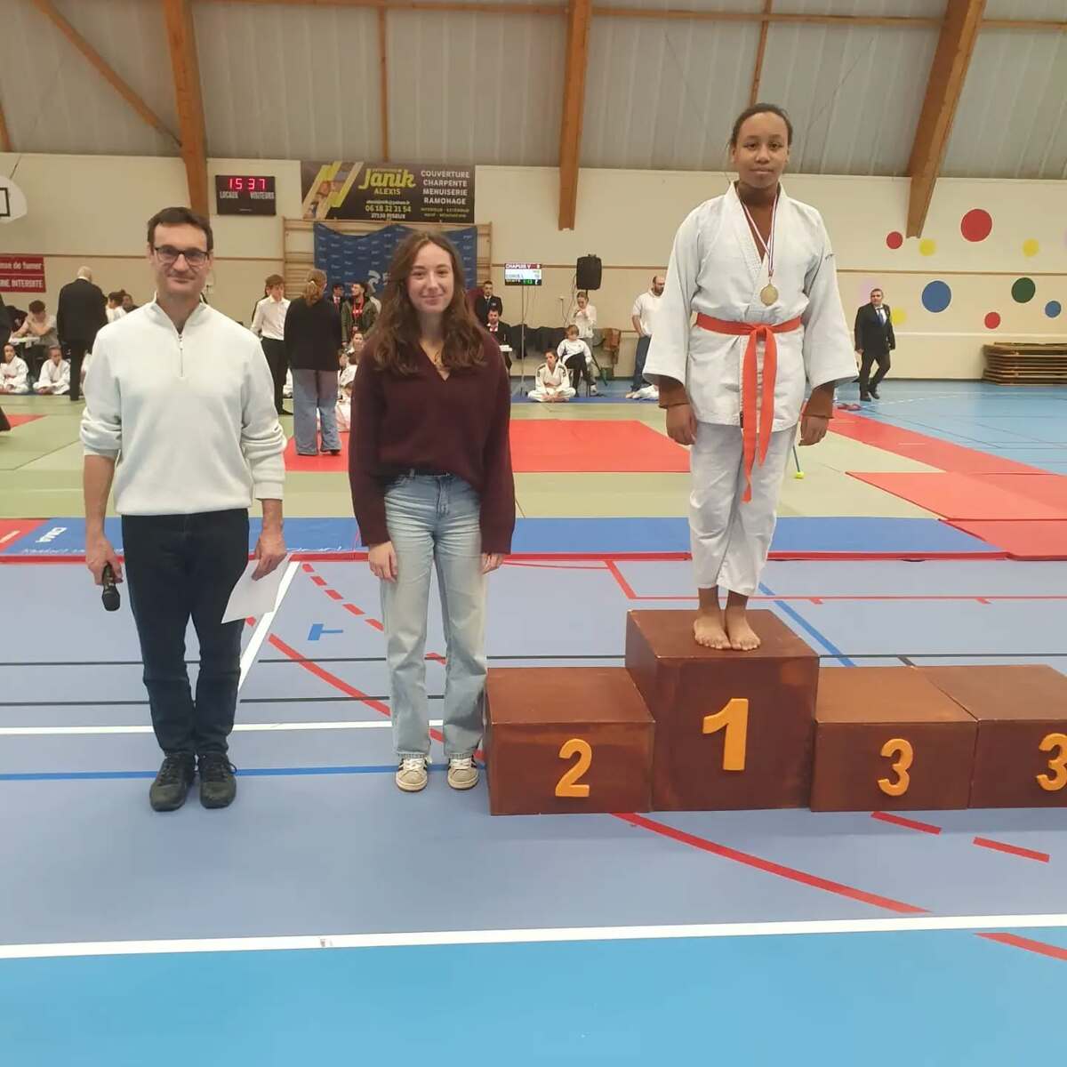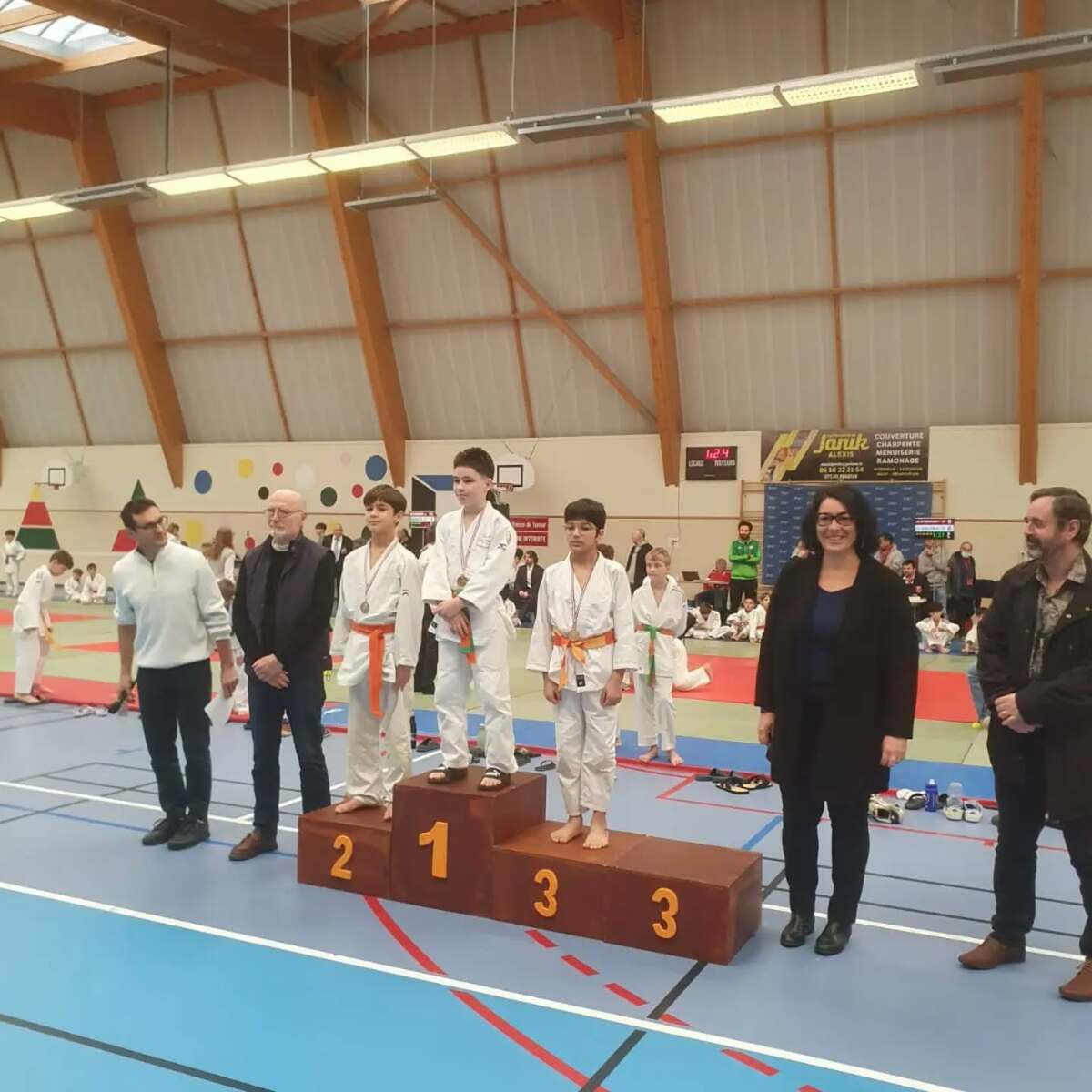 - Le même jour à La Vieille Lyre dans l’Eure, plusieurs benjamins ébroïciens combattaient au 2ème tour du circuit départemental. Parmi eux, Amy Sene, Peter Absalon et Seny Diémé remportent le titre. Ambre Serin et Lalao Gavarry se classent 2èmes. Mukhammad Bataev et Léo Ntsonde : 3èmes :